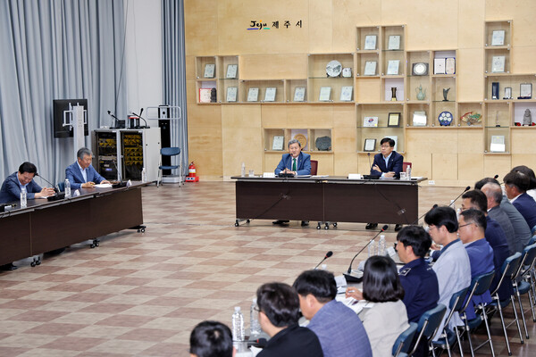 제주시는 5일 제주시청 1별관 회의실에서 김완근 제주시장 주재로 ‘2025 제주들불축제 평가보고회’를 개최했다.